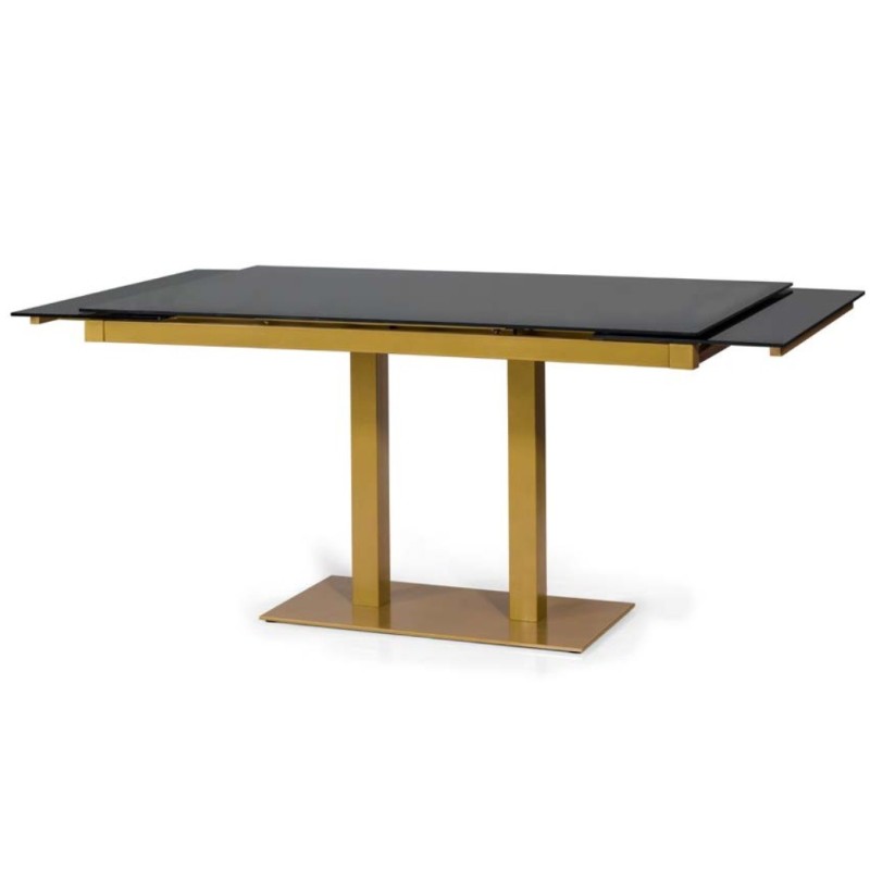 esa jantar extensível 110(170)x70 cm. Base e estrutura em ferro pintado, tampo e extensões em vidro com cor.